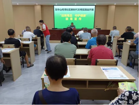 2025年9月16日,龙华山街道何湾社区新时代文明实践站内座无虚席,一场以“远离毒品·守护健康”为主题的禁毒宣传活动正在这里举行。45位辖区居民齐聚一堂,共同聆听了一堂生动而深刻的禁毒教育课。
