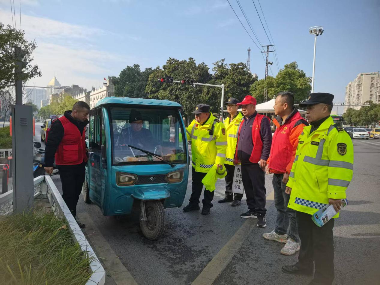 湖北日报客户端讯(通讯员王松、王淑敏)临近年底,面对日益增加的人流量、车流量,11月24日,沙嘴街道探索推出交通安全知识宣传新模式,沙嘴街道综合执法中心、村居志愿者配合仙桃市公安局交通管理大队城区二中队民警走上街头,讲述交通安全知识。不少居民群众现场感慨:“志愿者的一句话,比十次执法还管用。”