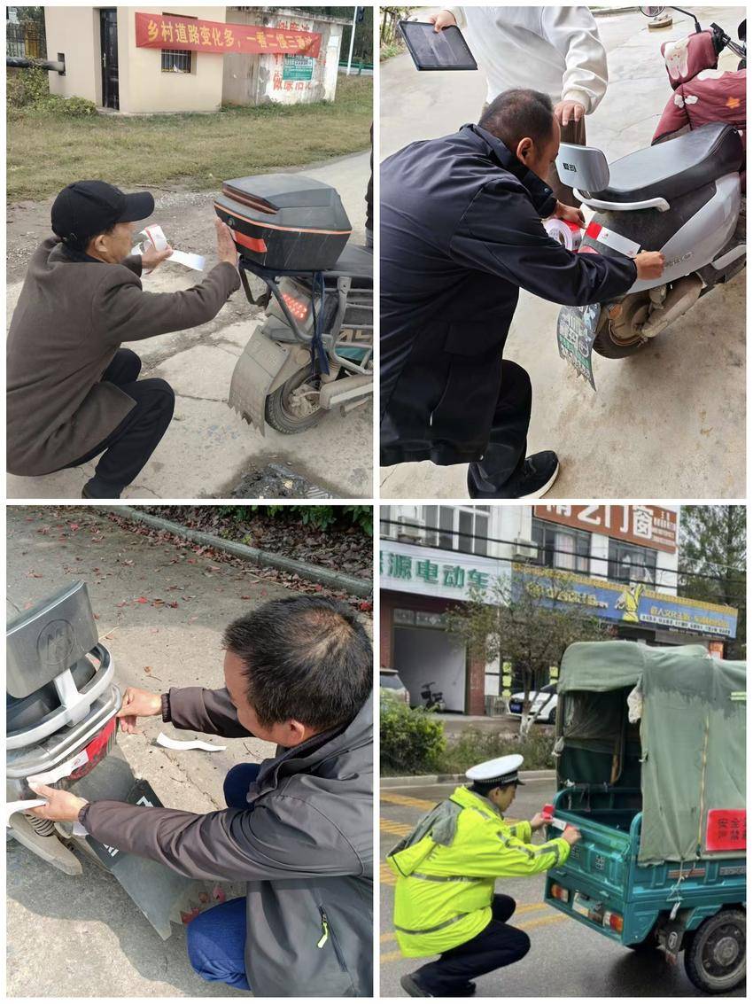 实干为民解民忧,细微之处见温情。该镇坚持知行合一,组织干部职工深入街头巷尾开展交通劝导,提醒群众规范佩戴安全头盔,劝阻闯红灯、违规载人等行为。针对农村“五小车辆”夜间出行隐患,工作人员逐车粘贴反光贴,同步科普安全常识,以“小举措”化解“大风险”,用务实行动践行“我为群众办实事”的初心。