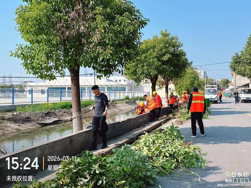 当天出动人员45人,重点对通信路、信合南路沿线及苏滩泵站沟区域进行清理。大家分工协作,修剪道路两旁树木80余株,清理苏滩泵站沟河面及河坡垃圾杂物20吨,信合南路清障除杂300米,集镇绿化带清障除杂1200米。经过一天的集中攻坚,工业园区环境面貌明显改善,道路干净通透、河道清澈整洁。