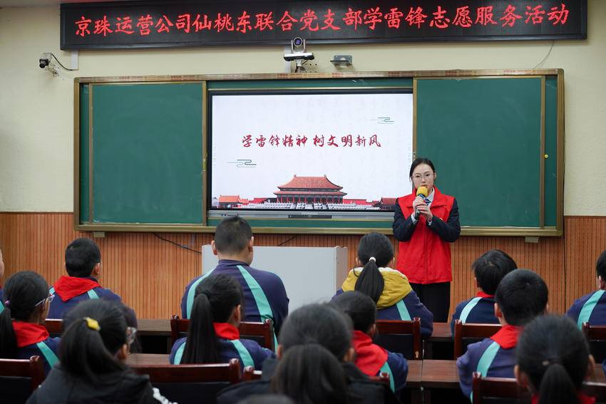 湖北日报客户端讯(通讯员李心怡、赵旭、王子明、吴清慧)“学习雷锋好榜样,忠于革命忠于党,爱憎分明不忘本,立场坚定斗志强……”,在第61个学雷锋纪念日到来之际,湖北交投京珠运营公司仙桃东联合党支部、团支部的党员、青年团员和长埫口杨显东小学三年级二班的同学们共同追忆雷锋,将平凡而又伟大的时代精神深深地印刻在每一位追“锋”人心中。