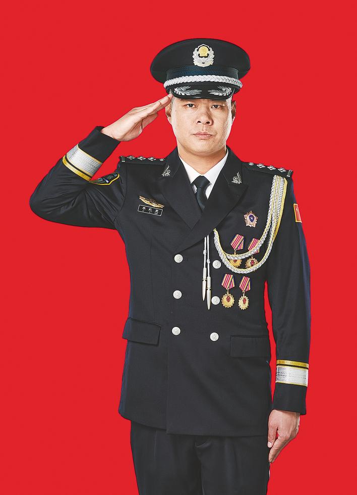 身高一米八零的李纪宽,皮肤黝黑,身体精壮。从体育老师转型的他,擒拿格斗、最小作战单元、射击、特警五项、突击攻坚、防暴队形样样精通。大队每天3-4个小时警务体能和技能科目训练,他都亲自上阵。