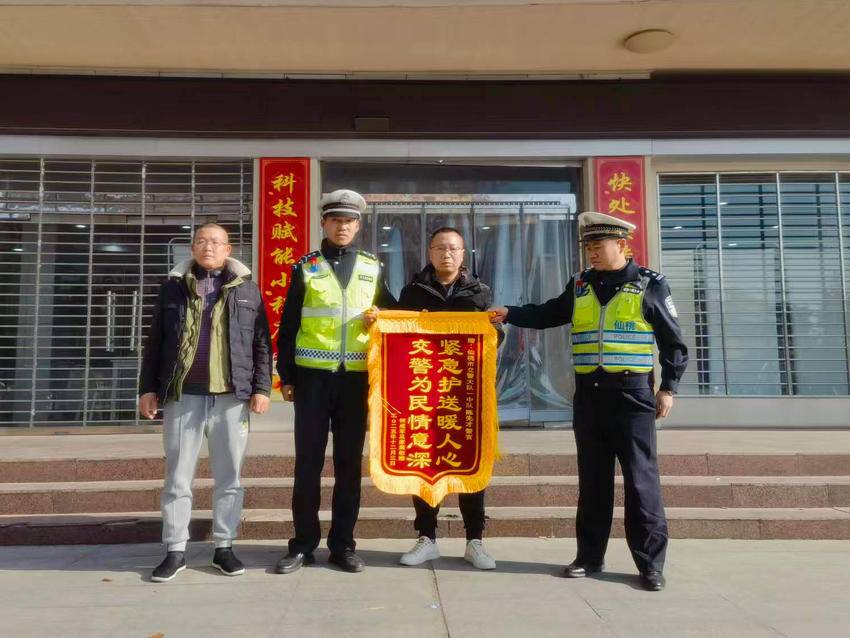 如今,这位误吞洁厕灵的13岁少年已经转危为安。12月3日,少年父亲何某专程将一面绣有“紧急护送暖人心交警为民情意深”字样的锦旗送到公安交管城区一中队,以此表达感激之情。