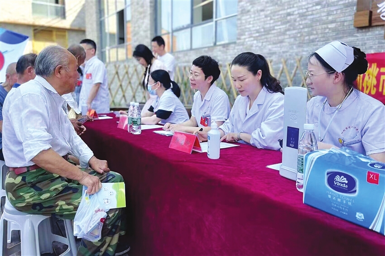 6月10日,市第一人民医院肿瘤科二病区医护志愿者来到彭场镇大岭村,开展“宫颈癌的三级预防”肿瘤科普知识讲座和“常见肿瘤防治的咨询”志愿服务,并联合心血管内科、神经内科、内分泌科、康复科等科室进行义诊,为居家老年人送医送药,现场提供脊柱关节慢性疼痛的康复理疗,对肿瘤慢性病患者进行居家护理的指导。图为义诊现场。