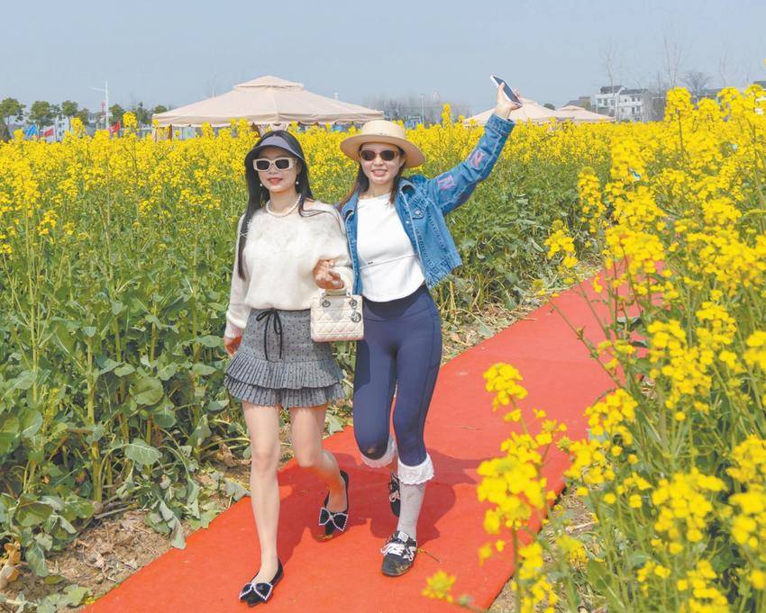 连片绽放的油菜花,不仅扮靓了乡村风貌,更吸引了络绎不绝的游客,成为杜湖街道春季旅游的一大亮点。自去年以来,杜湖街道立足辖区实际与资源优势,聚焦“花经济”、深耕“花文章”,因地制宜打造特色赏花消费季。通过利用冬闲田规模化种植油菜,构建起“春赏花、夏榨油”的完整产业链,让闲置的冬闲田成功变身村民的“增收田”。