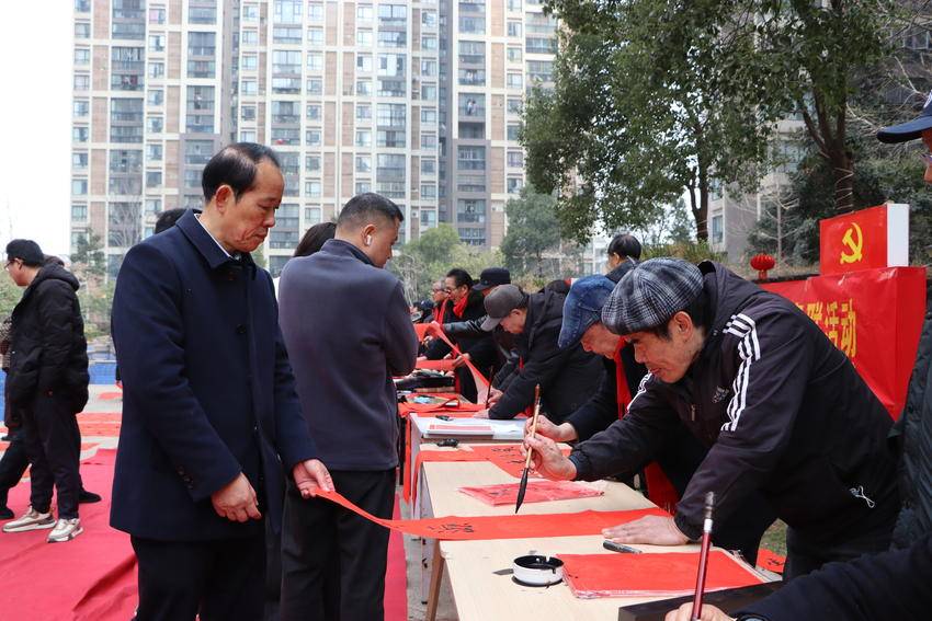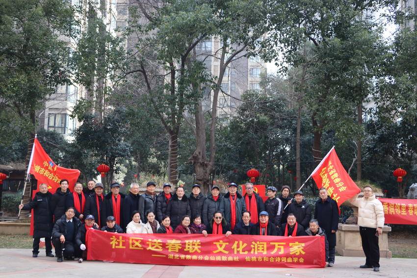 湖北日报客户端讯(通讯员冯玉卿)2月12日上午,湖北省散曲分会仙桃散曲社与仙桃市和合诗词曲学会联合举办“社区送春联·文化润万家”公益活动,为和合国际城小区居民送上新春祝福。
