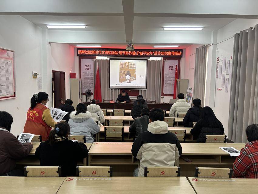 湖北日报客户端讯(通讯员罗婵娟)新春佳节将至,各类诈骗活动也进入高发期。为切实提升社区居民的防范意识和能力,守护好群众的“钱袋子”,2026年2月11日上午,龙华山街道蔡帮社区新时代文明实践站精心组织,在社区活动中心及周边人流集中区域开展了主题为“春节防诈骗 护航平安年”的专题宣传活动。