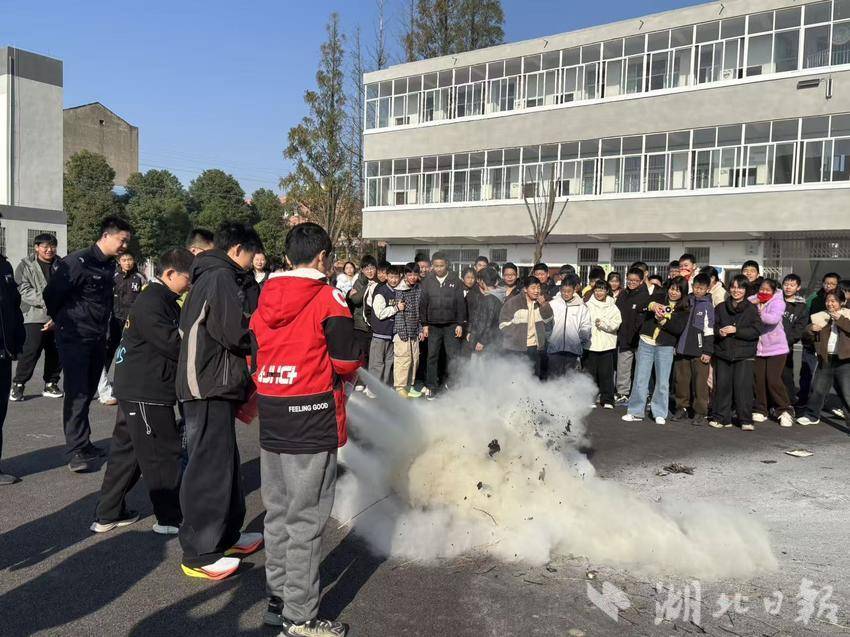 随后,镇派出所民警和应急办工作人员向师生们详细讲解了消防安全法律法规、火灾预防、初期火灾扑救及冬季安全用电等知识。现场,工作人员重点演示了灭火器的正确使用方法,并耐心讲解“提、拔、握、压”四字要诀。在专业人员的指导下,部分学生代表亲身体验了灭火器灭火的过程,将理论知识转化为实践技能。活动现场还展示了四轮消防车和机动泵等专业消防设备,让大家对消防救援工作有了更直观、更深刻地认识。