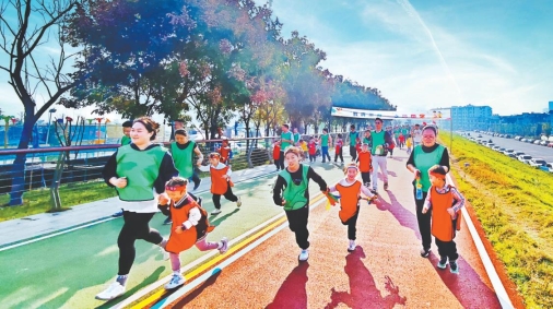 湖北日报客户端讯(通讯员张曼)仙桃市推动全民健身与全民健康深度融合,推进群众体育、竞技体育与体育产业协同发展,更好地满足群众对健康生活的新期盼。图为11月15日,市学府幼儿园在汉江奥运公园开展亲子马拉松,幼儿与家长大手牵小手,在七彩步道共赴奔跑之约。