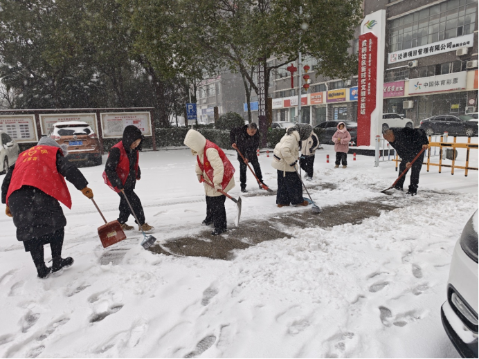 湖北日报客户端讯(通讯员李逸)2026年1月20日上午,面对持续的降雪天气,龙华山街道黄荆社区新时代文明实践站迅速行动,组织工作人员及志愿者开展集中扫雪除冰志愿服务活动,用实际行动为辖区居民扫出一条条“平安路”。