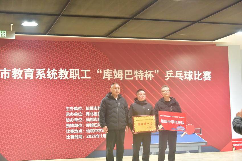 湖北日报客户端讯(通讯员毛蓉)新年伊始,寒意未消,仙桃中学的体育馆内却暖意融融、激情涌动。为期三天的仙桃市教育系统教职工“库姆巴特杯”乒乓球比赛于2026年1月16日圆满落下帷幕。这场春节前的体育盛会,以球为媒搭建交流平台,以赛聚力弘扬拼搏精神,不仅展现了新时代人民教师的昂扬风貌,更将体育力量融入区域教育中心建设的生动实践,为仙桃教育高质量发展注入了强劲动能。
