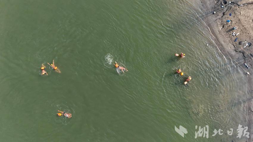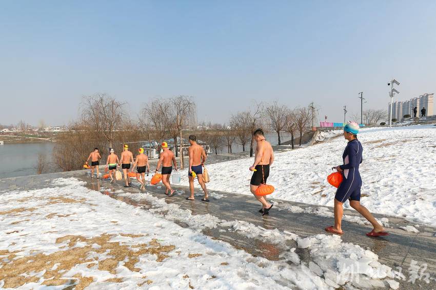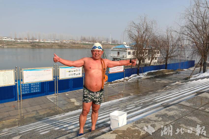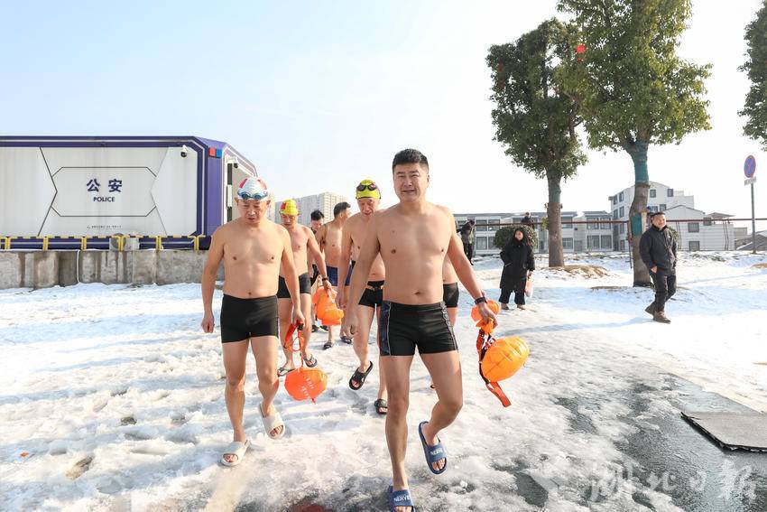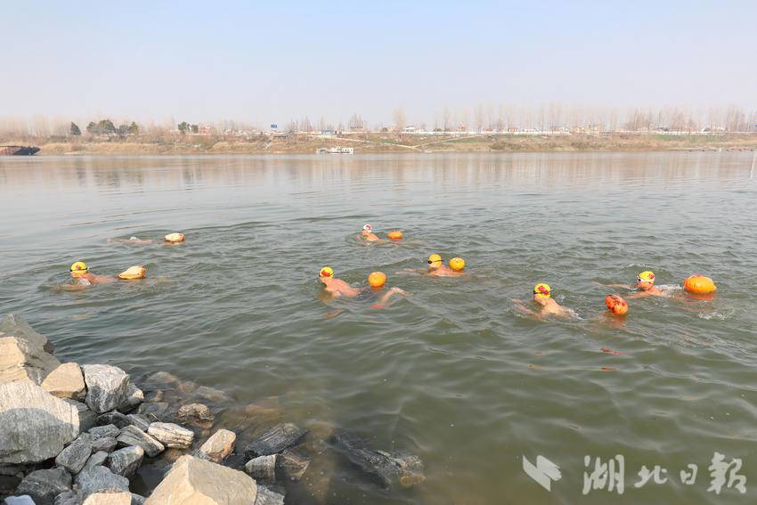 汉江岸边尚未完全消融的白雪,见证了冬泳队员的奋勇向前。