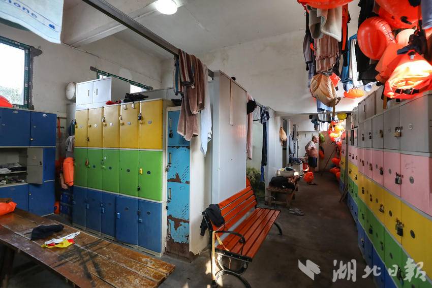仙桃市游泳协会简陋的更衣室和淋浴间。
